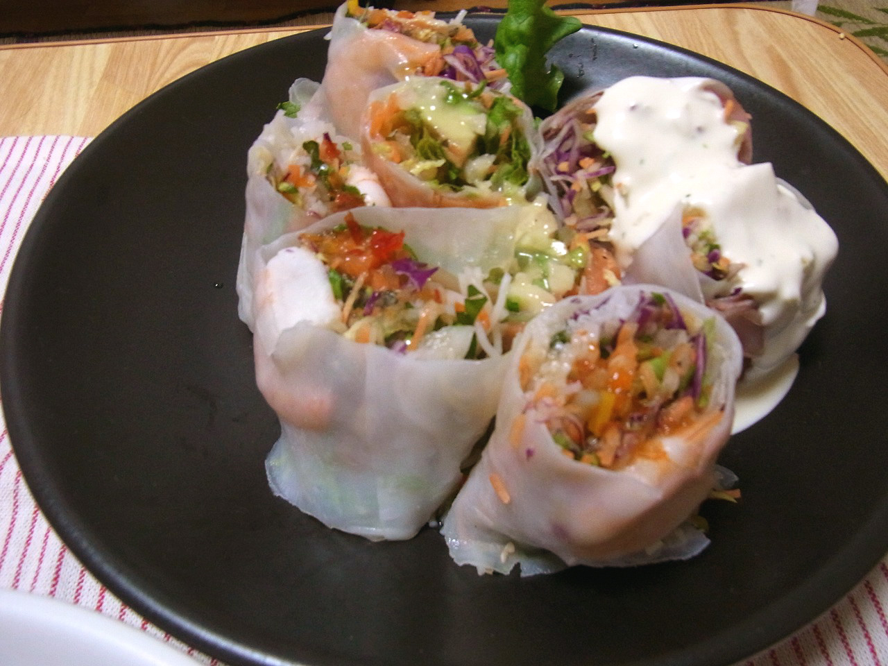 ソースも3種類。まいね的には、真ん中のスモークサーモンの生春巻き+オレンジクリームソースが一番好きだったかな。