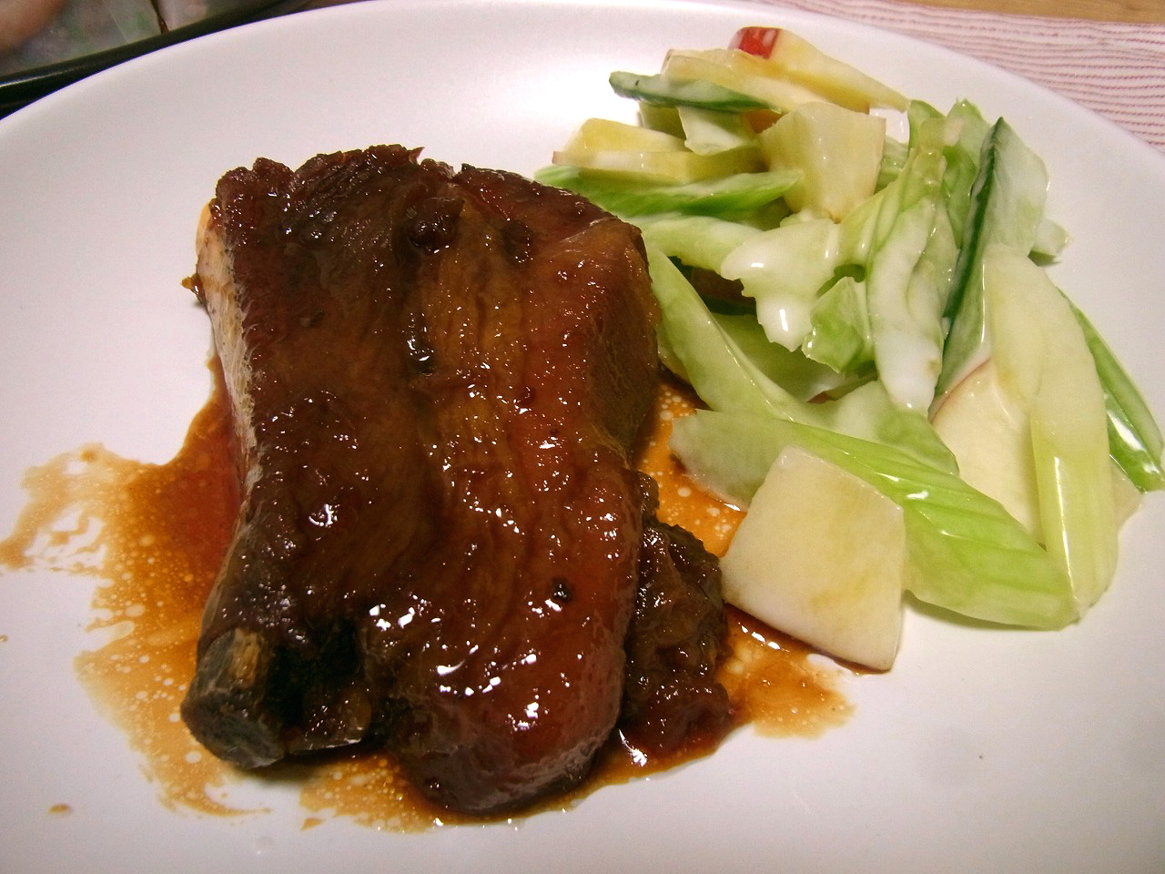 <スペアリブうま煮+セロリとリンゴのサラダ>