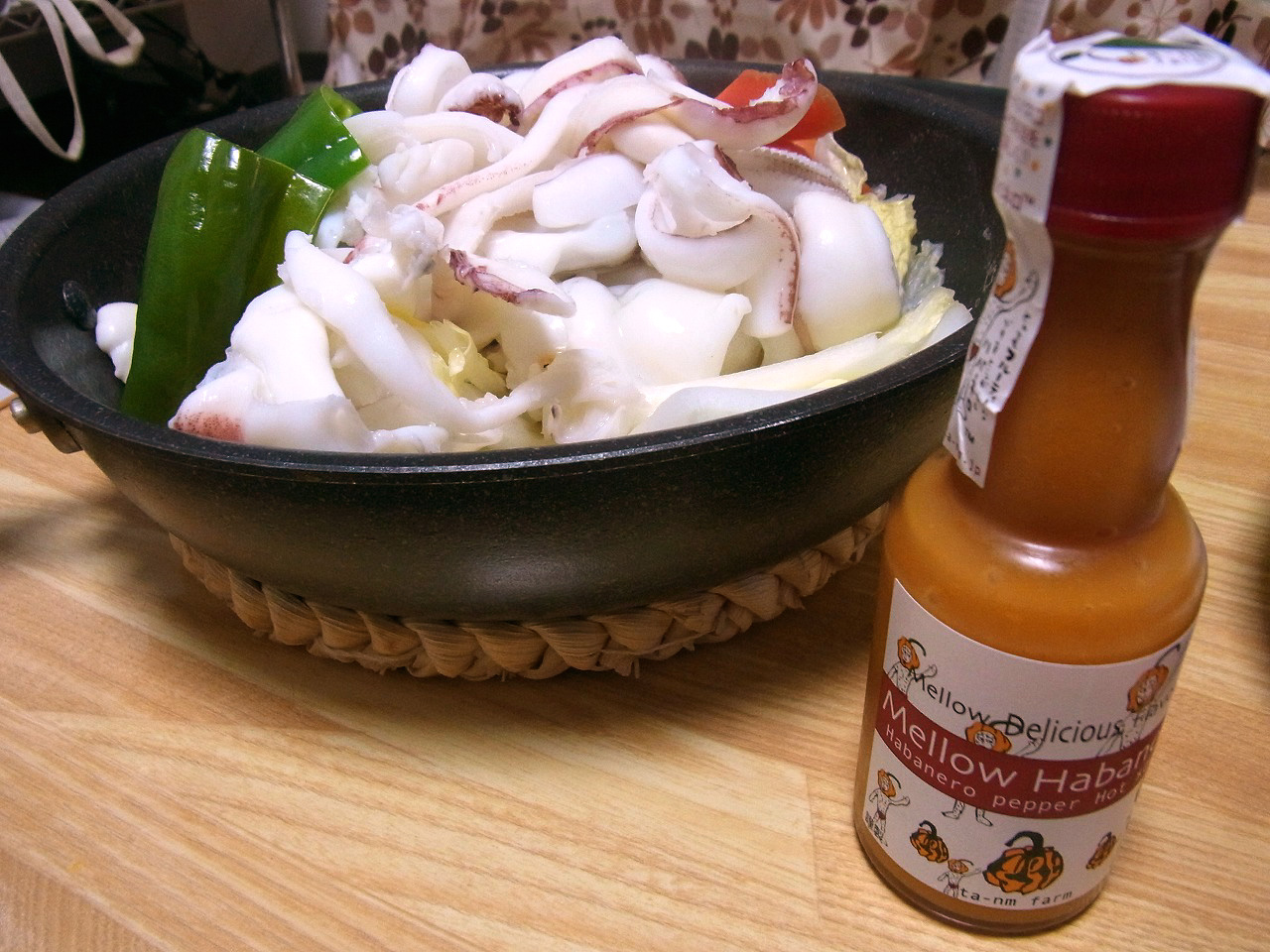 <イカとたっぷり野菜の蒸し鍋。メローハバネロとともに>