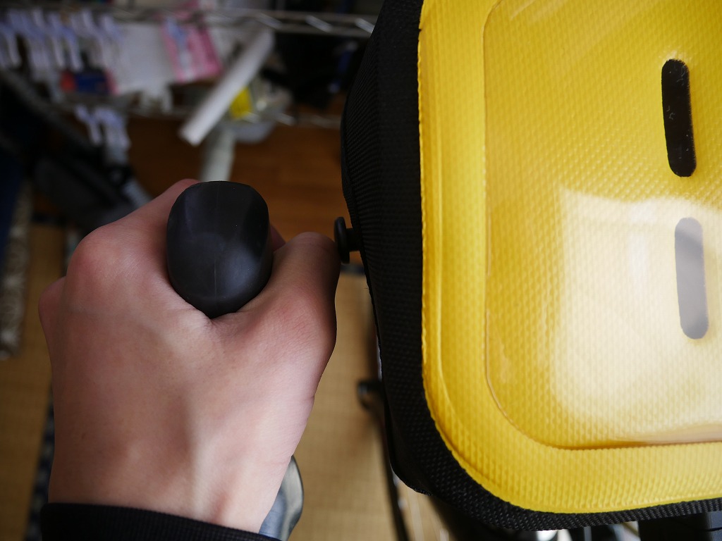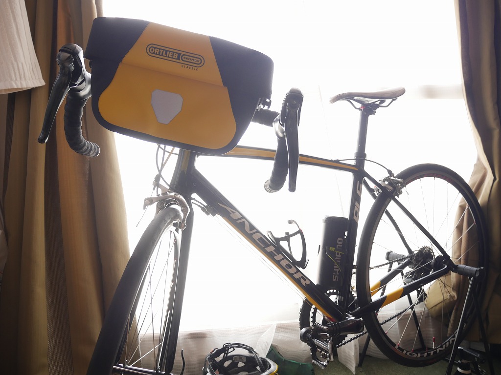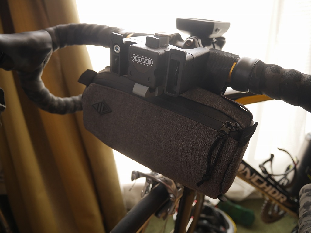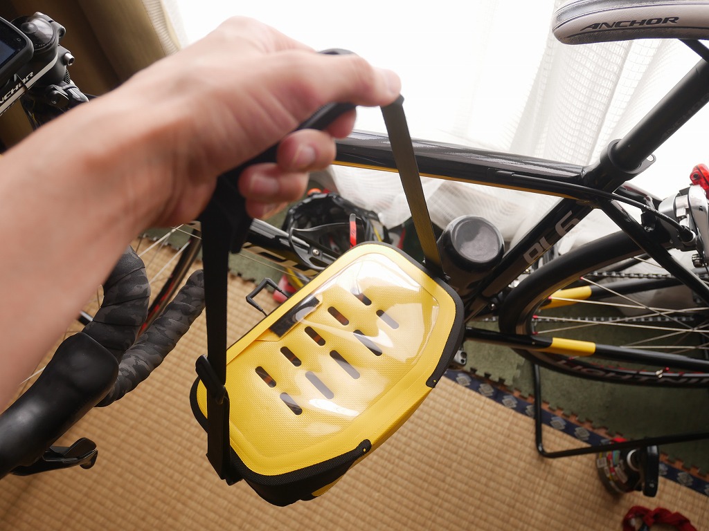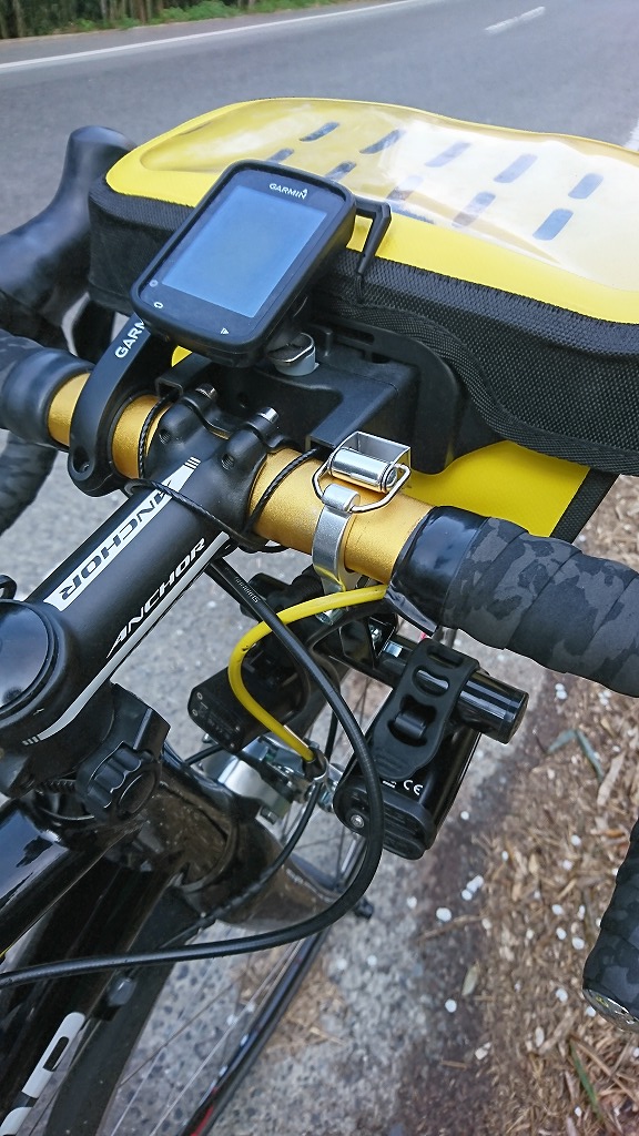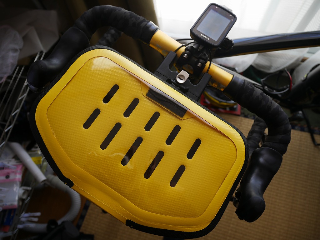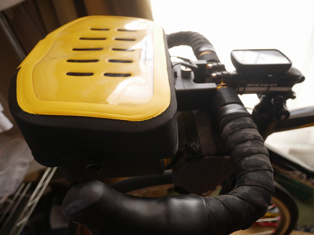 サイコンは若干バッグのフタに干渉しますが、ステムマウントじゃなくハンドル側に戻して、