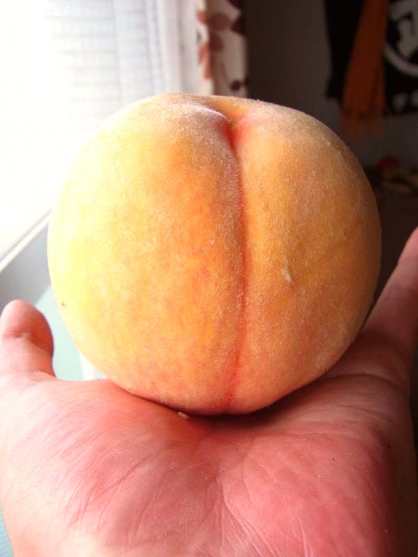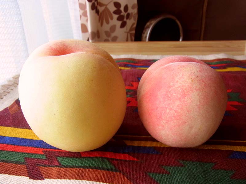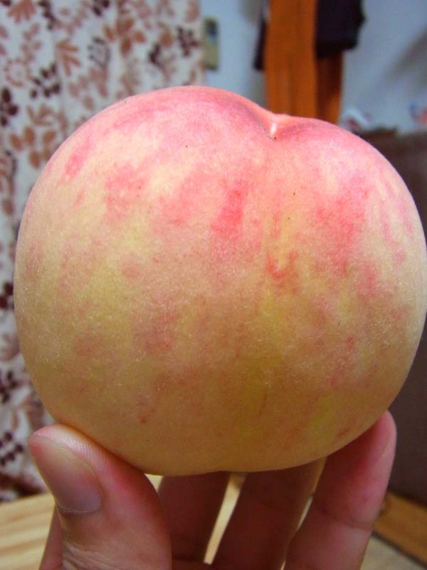 元々赤い色をした桃でして、完熟っぽい見た目でも買ってすぐはリンゴかと思うほどの固さ。