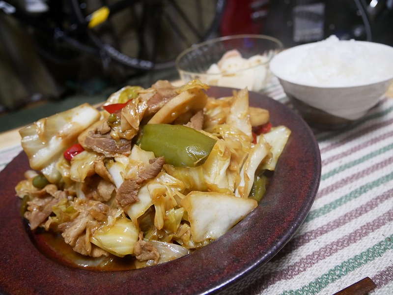 →茄子の炒め物でご飯モリモリ…あぁ、たまらん(*´з,`)<ぢゅるり