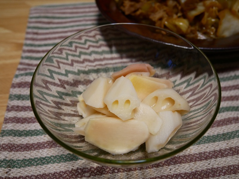 蓮根が安くたくさん売っていたので、回鍋肉と甘酢漬けにしてみました。