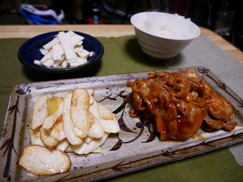 <回鍋肉、蓮根と新生姜の甘酢漬け>