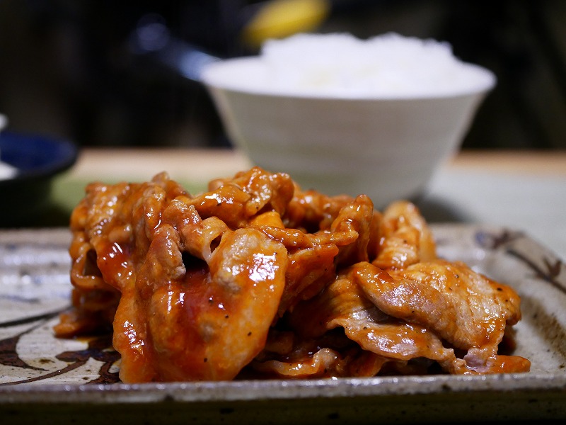 豚バラをじっくり炒めた脂と、甘味噌の味を吸った蓮根…