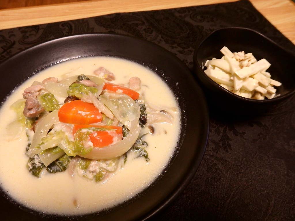 スープまでしっかりいただけるミルク煮は、身体も温まるし