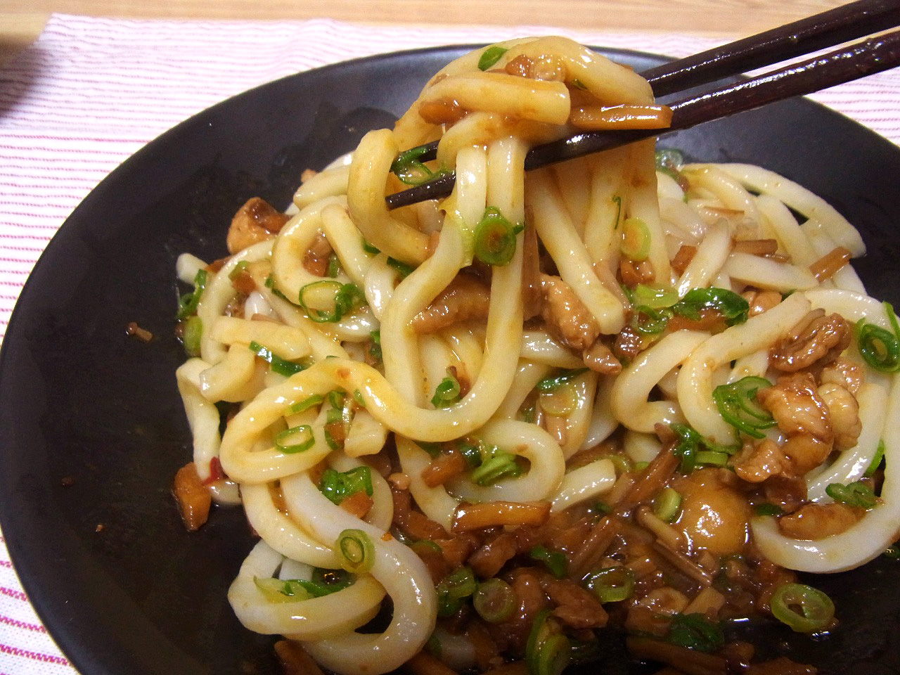 <鶏皮油うどん。混ぜ混ぜして召し上がれ>