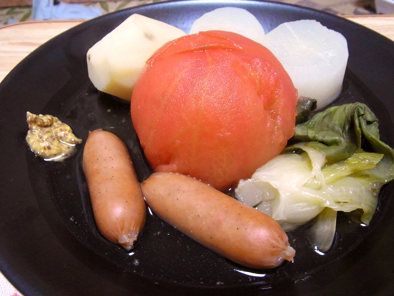 じゃがいも、大根、チンゲンサイ、トマトにウィンナー。