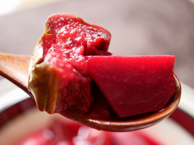 お味としては出汁の塩気に、ビーツや野菜の甘さが出て中々美味しかったです。
