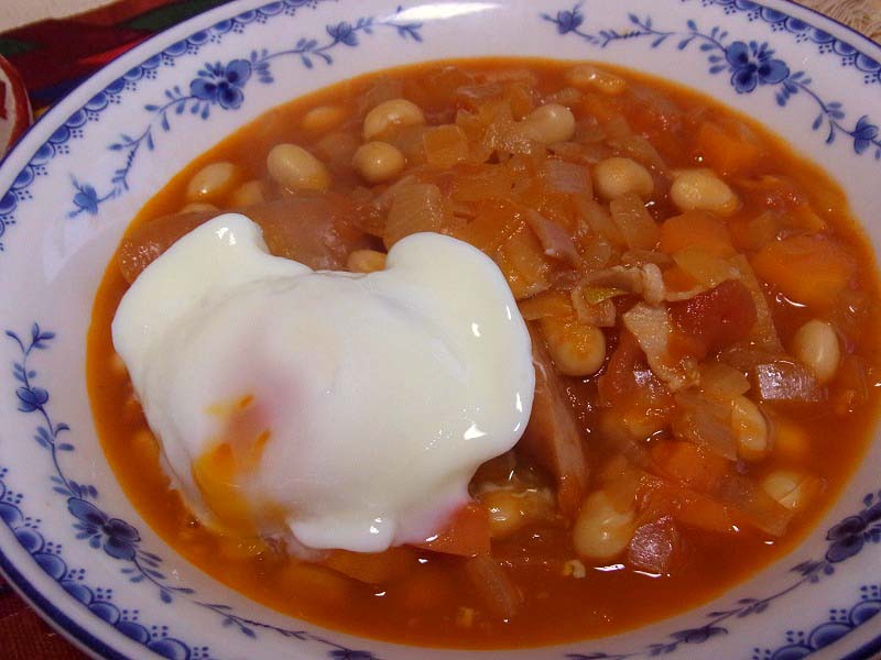 <チリコンカン温玉乗っけ>