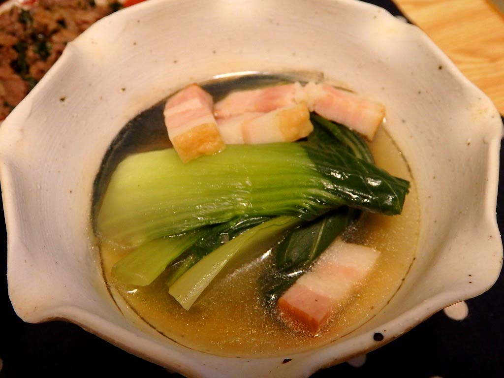 クセのない野菜なので洋食でもイケます。今回は厚切りベーコンとともに