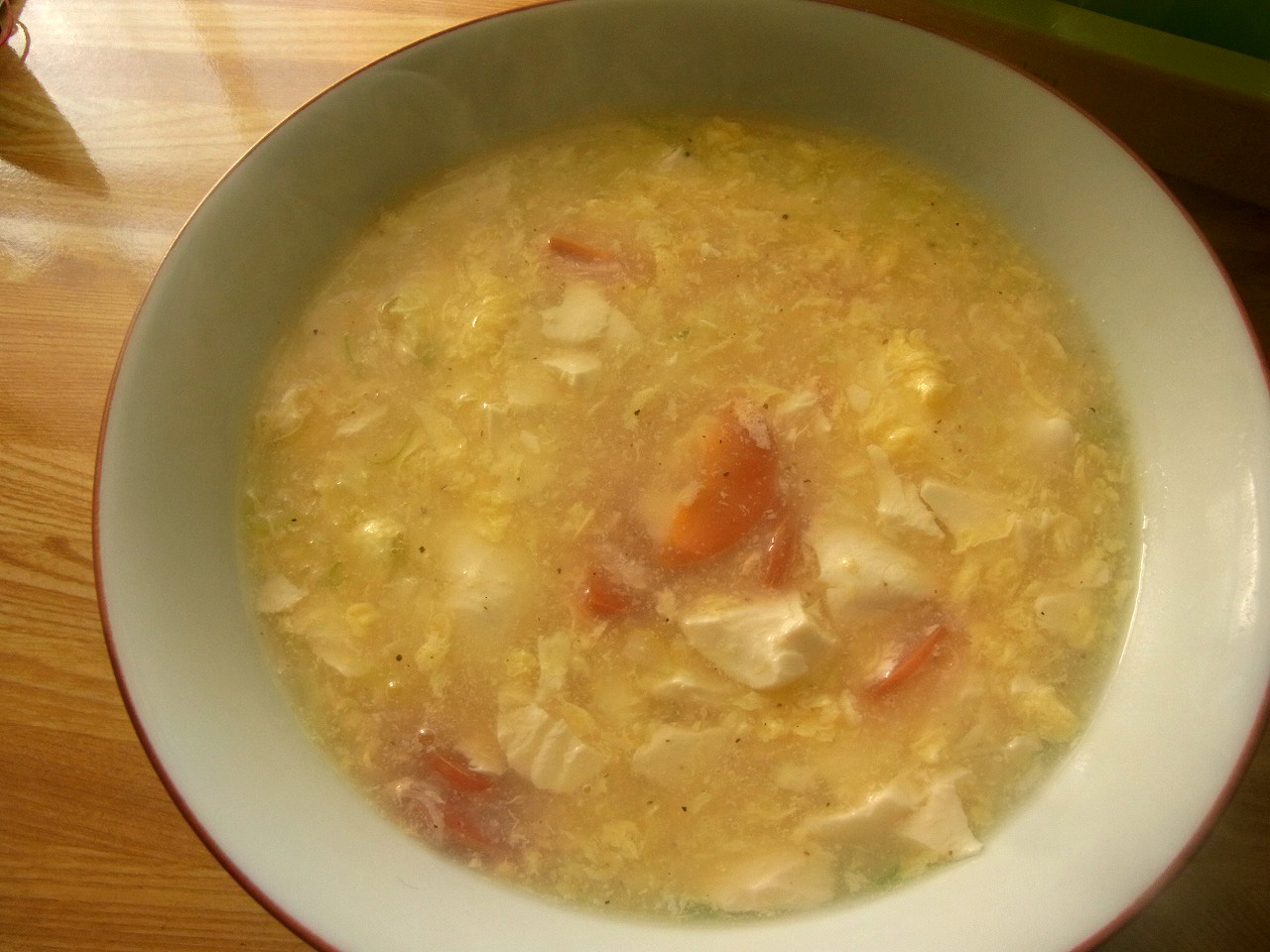 湯がいたお餅に、すっぱ辛いとろみスープをかけて。
