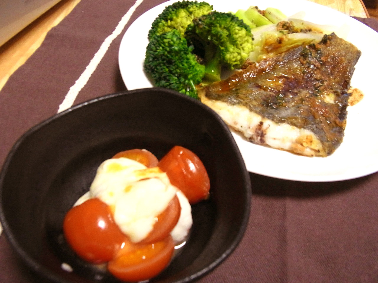<ゲタのムニエル、トマトとチーズのオーブン焼き>