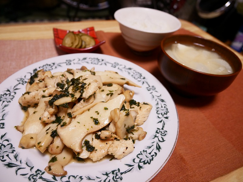 鶏肉、エリンギにパセリとバターでも十分美味しいけど、レモン汁でちょっと酸味を加えた