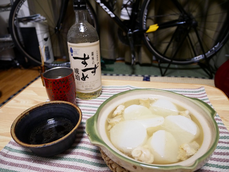 大根を入れて煮ました。タレは、鍋の汁で割った醤油です。