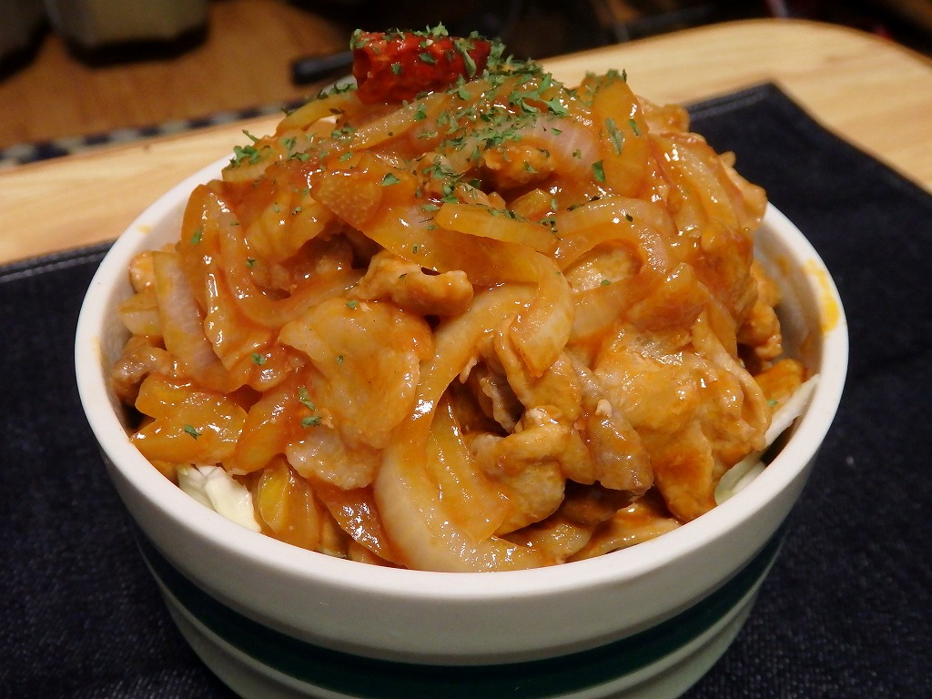 <こんもり春キャベツのポークチャップ丼>