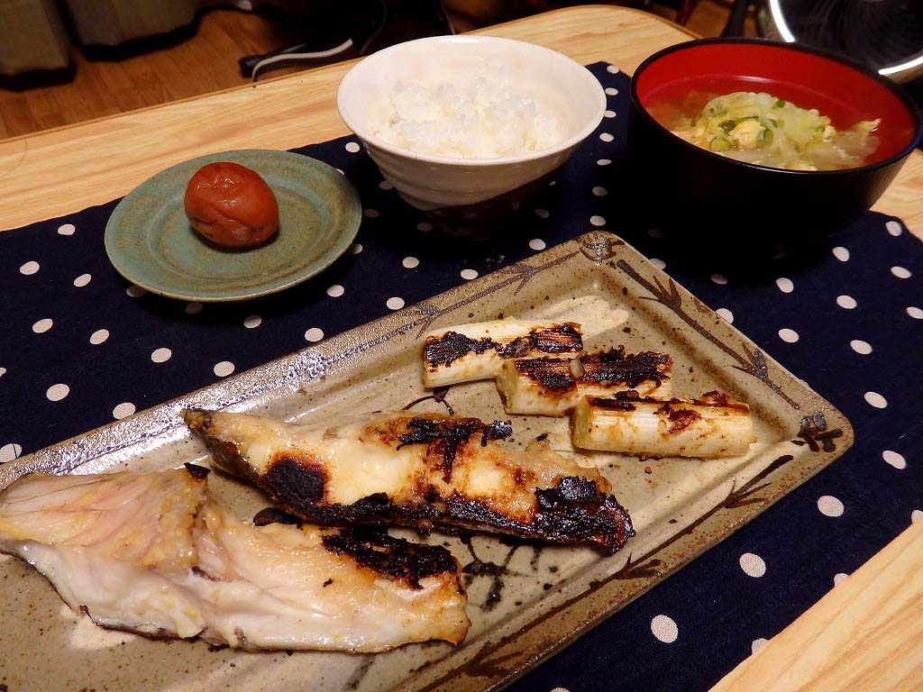 ってことで、優しいお味の鯛を白ネギとともに味噌漬けにして焼きました。