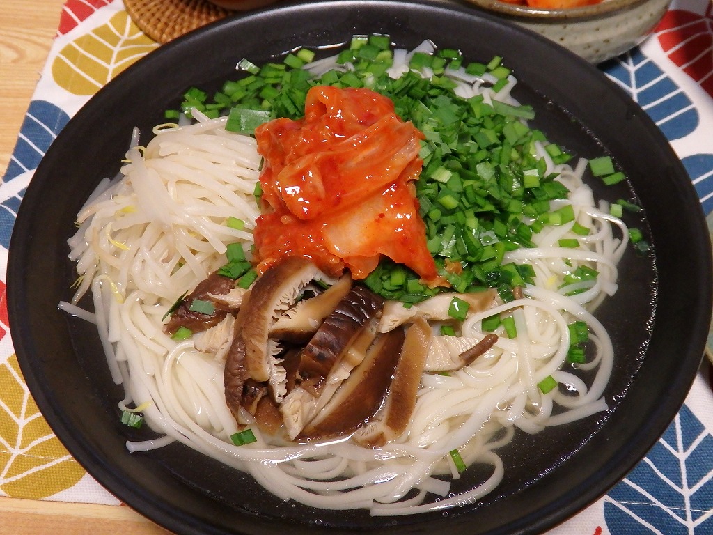 <煮豚のキムチ添え、韓国風汁ソーメン>