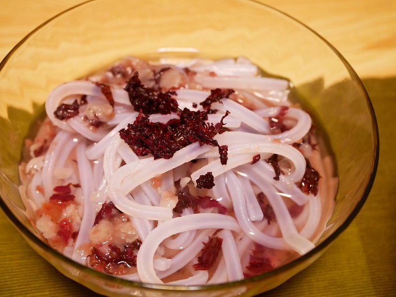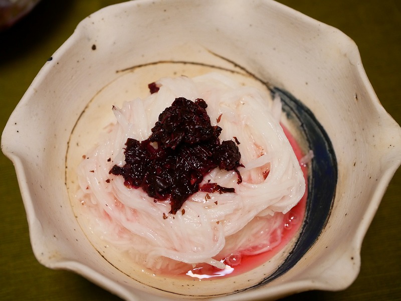 刻んだ梅肉、しそを加え、葛きりを入れてみました。