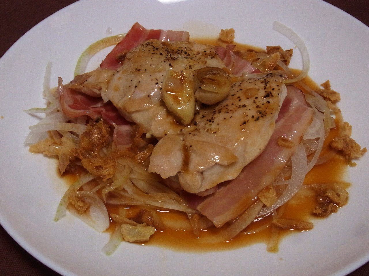 <ベーコンとチキンのグリル 2種の玉ねぎとともに>