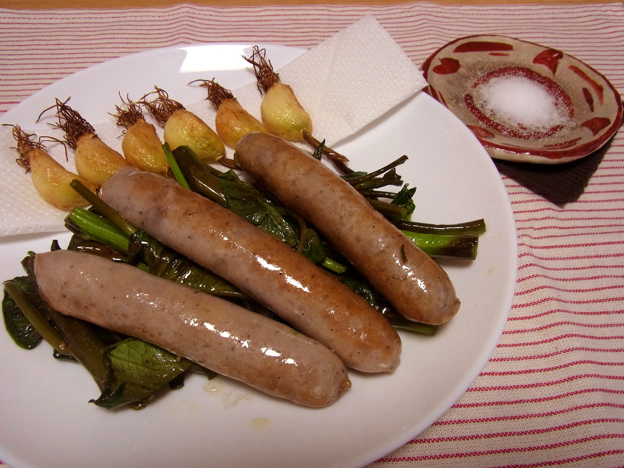 にんにくの風味を吸った油で空芯菜とソーセージを炒めれば、これも間違いようのない味!w