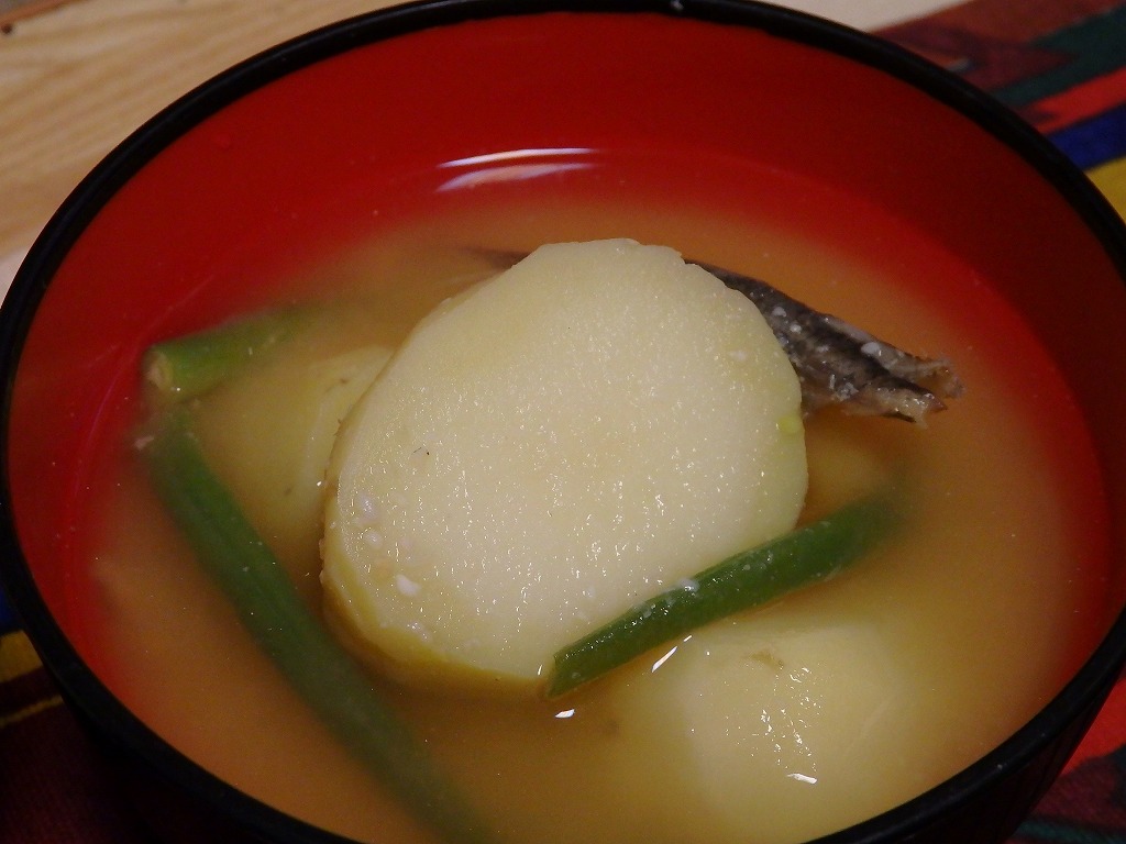 「じゃがいも+ささげ+煮干し」の味噌汁が大好きで、思い出しつつ料理したのですが、