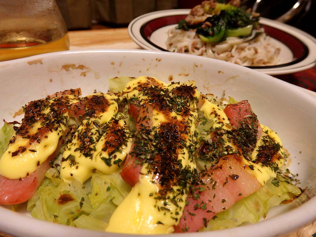 マヨネーズ焼きは爽やかハーブと甘~いキャベツで、見た目の割に優しい感じに仕上げました。