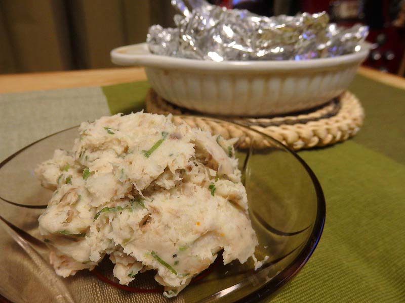 しっかり軟らかくなるまで煮た里芋をフォークでつぶし、