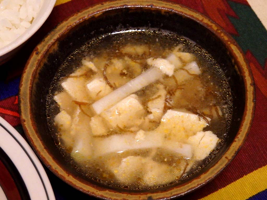 中華スープにもずく酢、食感のために細切り大根をお好みで。