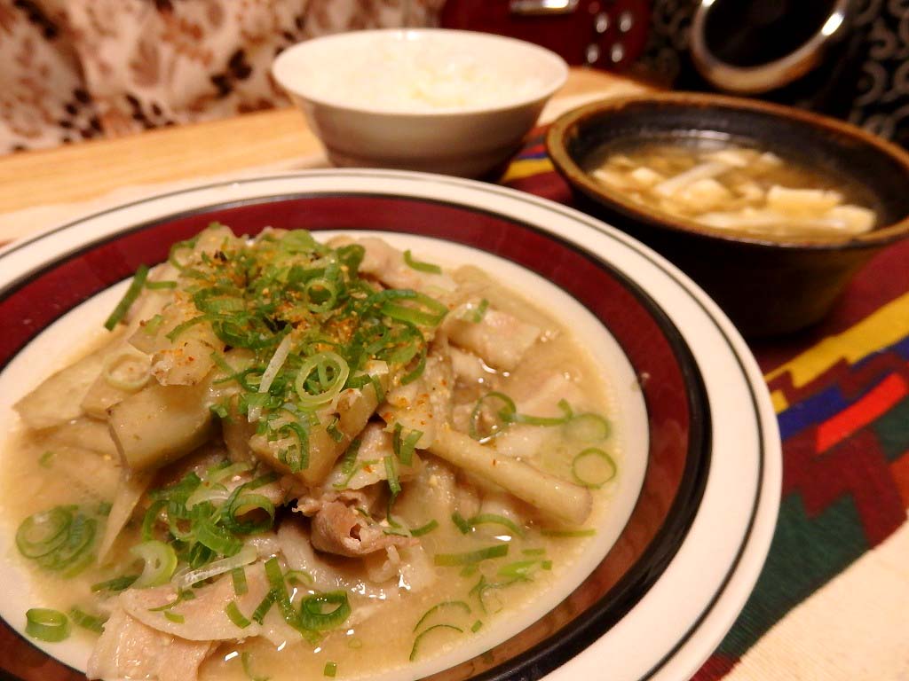 ごぼうと豚バラはちょっと濃い味で煮て、汁ごとご飯に乗っけていただけば…