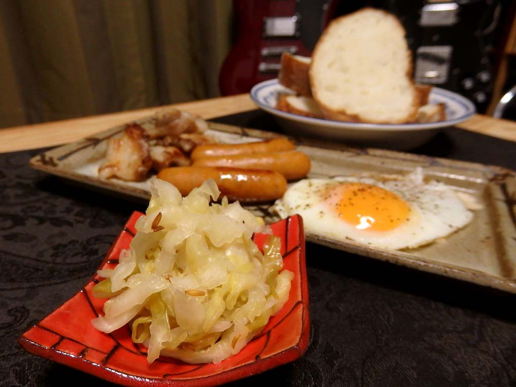 本場ドイツの鉄板組み合わせ、ザワクラ+焼きソーセージです。