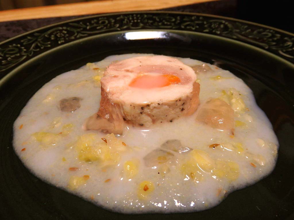 (ソースの中に浮かんでるのは、刻んだザワクラとチキンの煮凝り部分)。