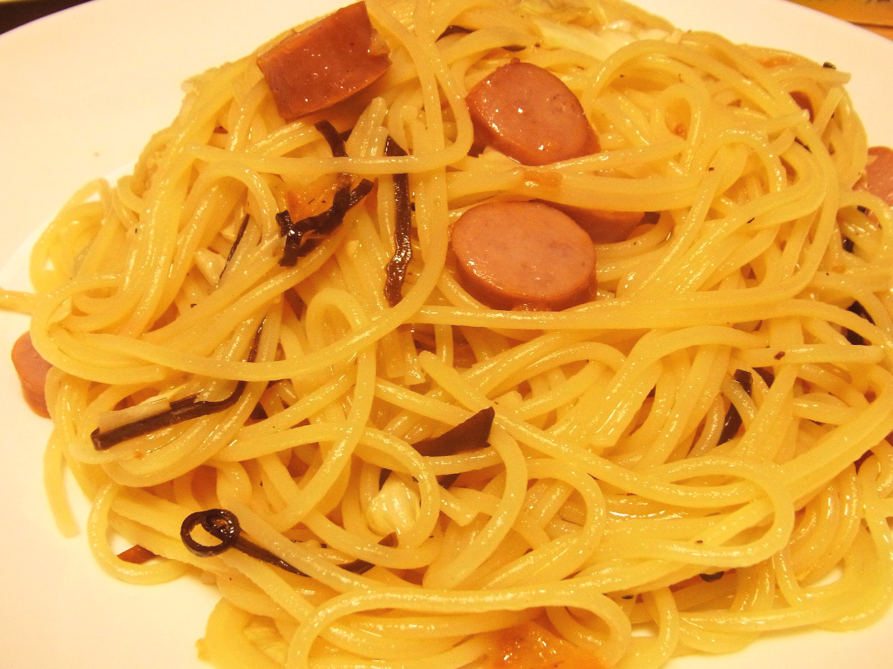 意外とパスタにもいけます。ザワークラウトと塩こんぶの和風スパ。
