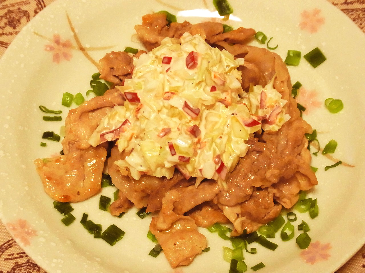 ちょっとオシャレに、豚肉ソテーのザワークラウト・新玉ねぎタルタルのせ