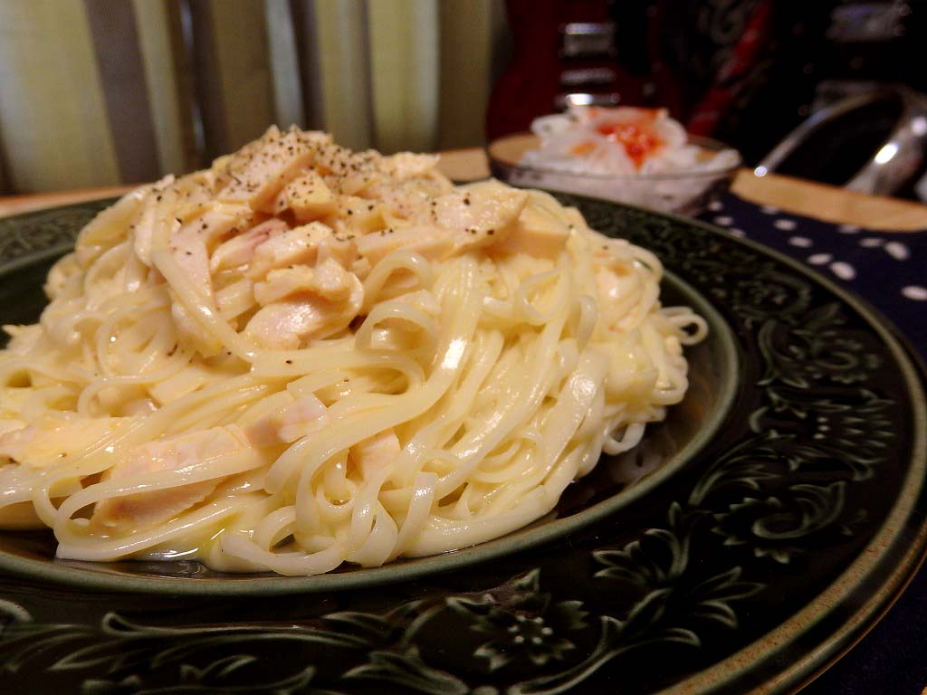 <鶏ハムのあっさりカルボナーラ>