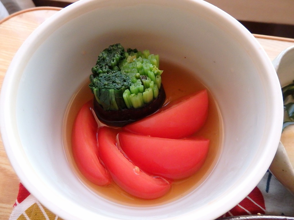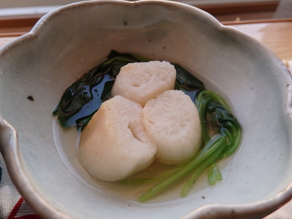 <餅麩とみつばの温かいおひたし>