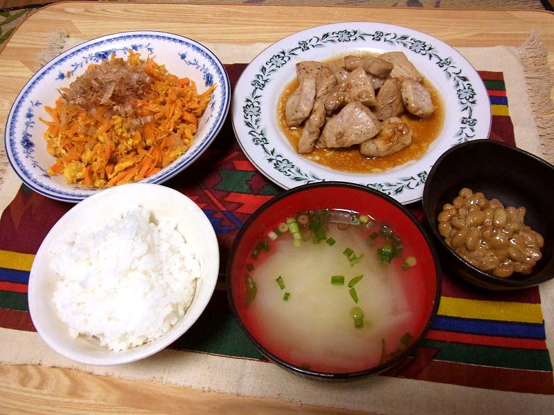 <にんじんしりしりと、すっぱ辛豚ソテーのディナー>