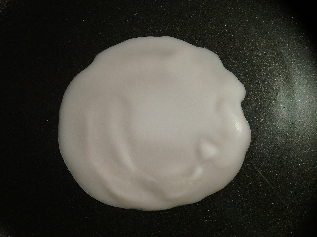 白玉粉を水で溶き、食紅で色を付けたものをテフロン加工のフライパンでジュー