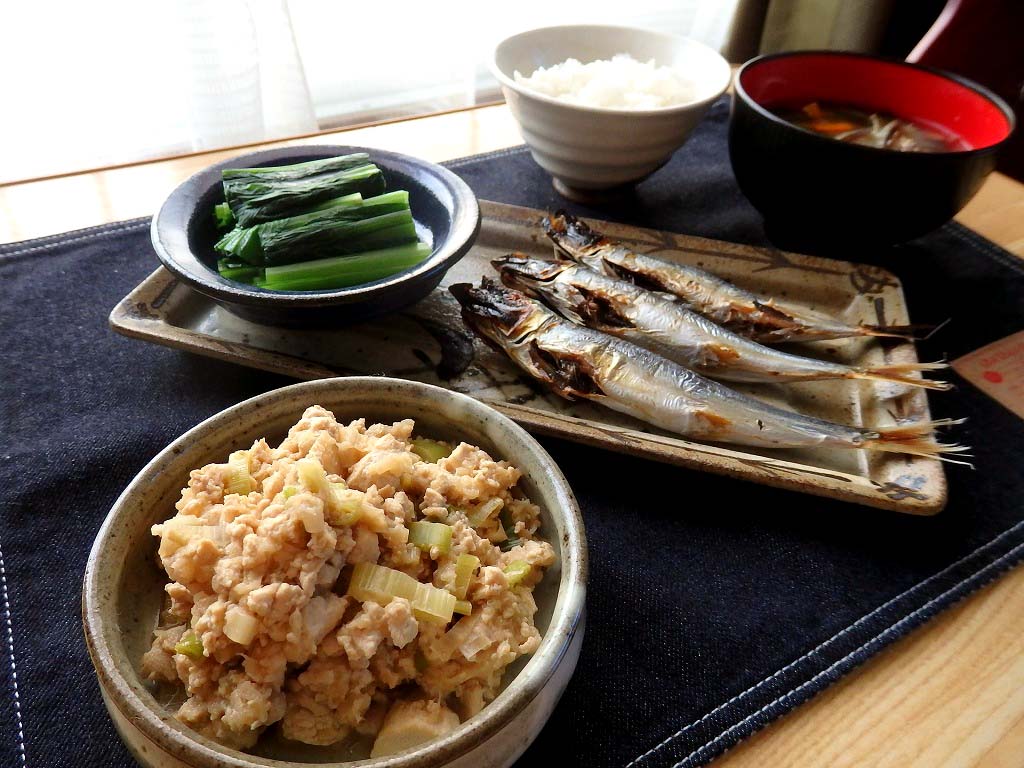 力を蓄えるために、めざしとおひたしでご飯を2杯も3杯もお代わりをする