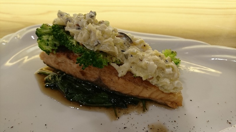 <サーモンのソテー ザワクラタルタルソース(メニュー外)>