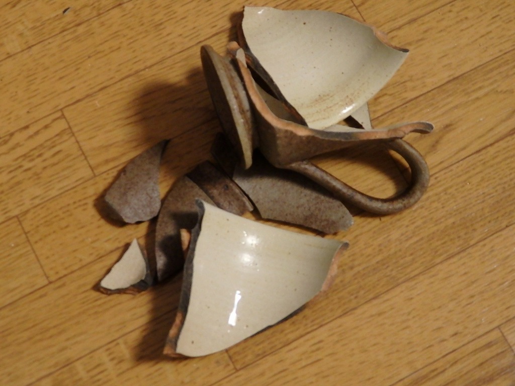 昨年の珈琲のためのうつわ展で購入した、大のお気に入りのカップが無残な姿に。