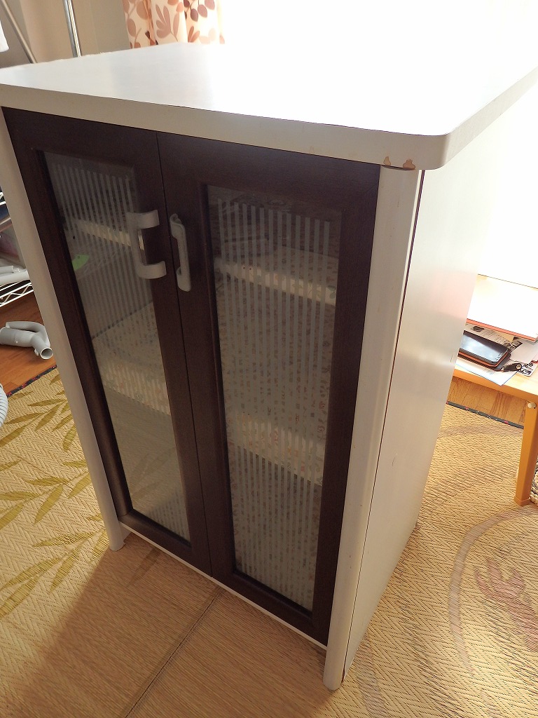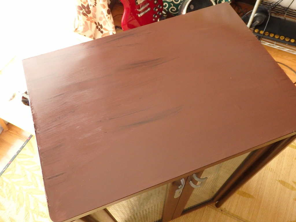 調子に乗って、今度は更に大きい食器棚を焦げ茶色にリカラーします。