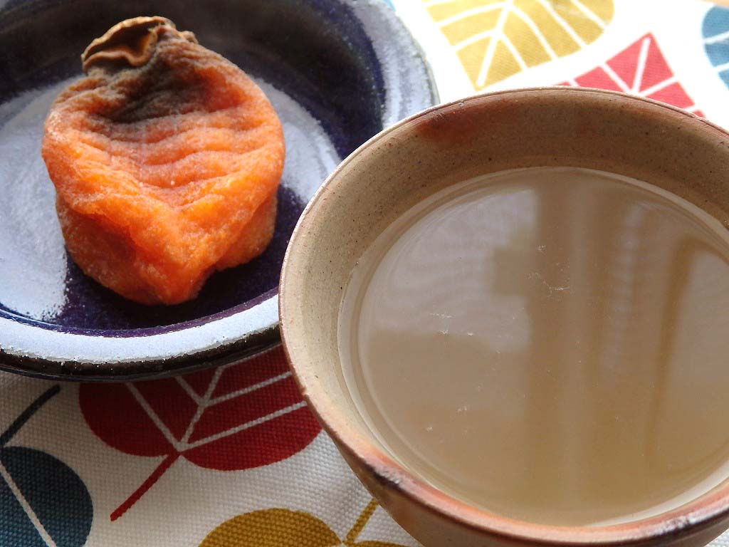 <部屋のワックスがけもしなきゃ…生姜湯グビリ、干し柿ムシャア>