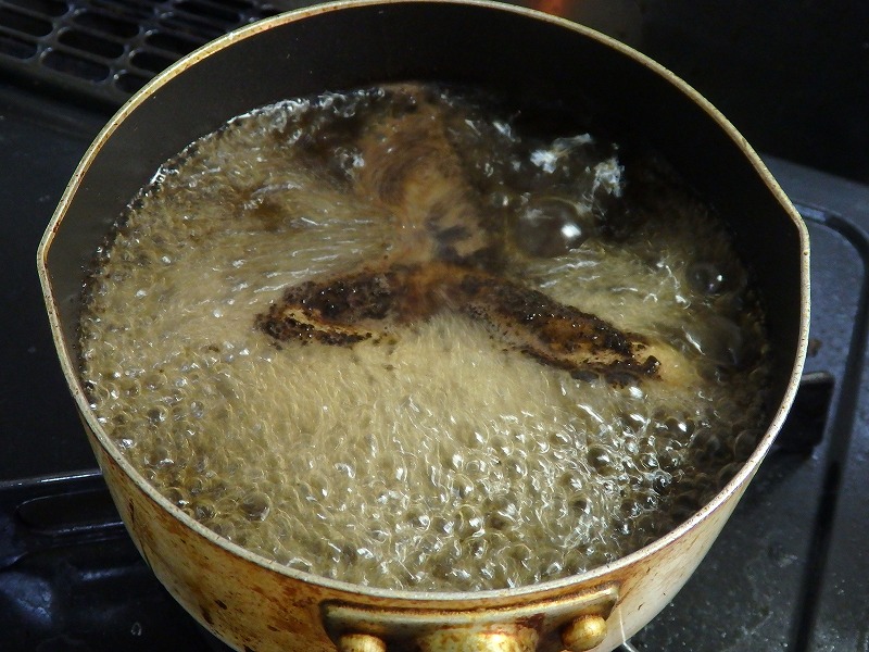 <まずはおろしたてネルをコーヒー粉と共に煮ます>