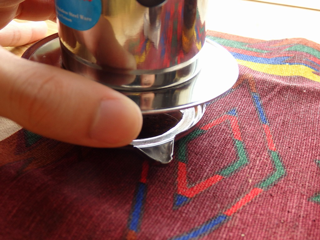 ここである程度粉を押さえます。押しつけが弱いとお湯がすぐ流れて薄いコーヒーに