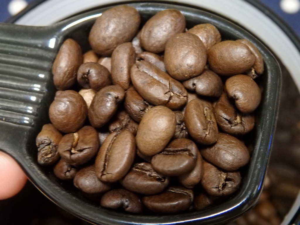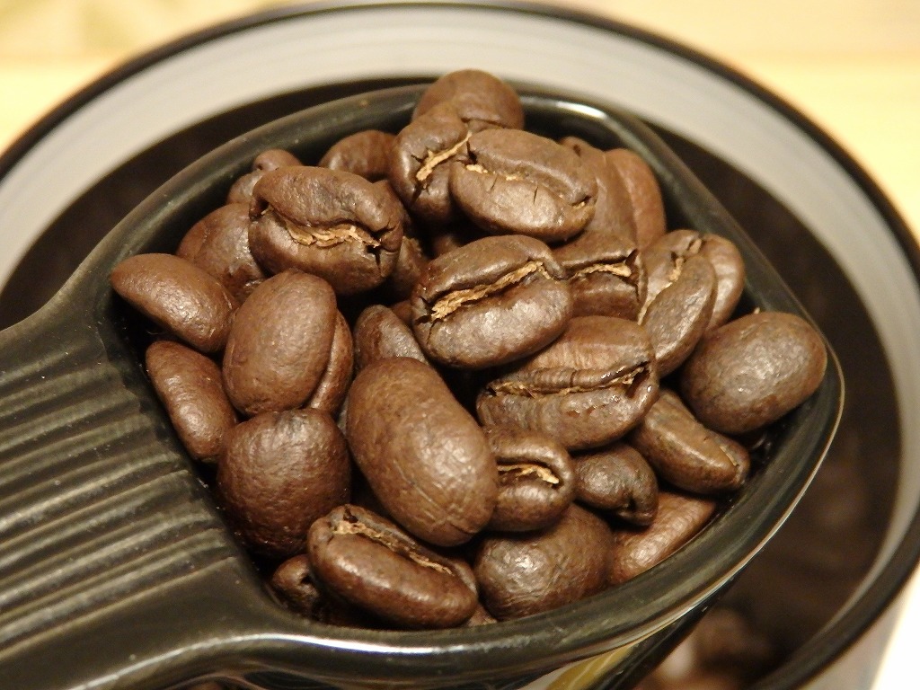 ・豆の色はそんなに深煎りに見えませんが、割としっかりした苦味のあるコーヒーです。