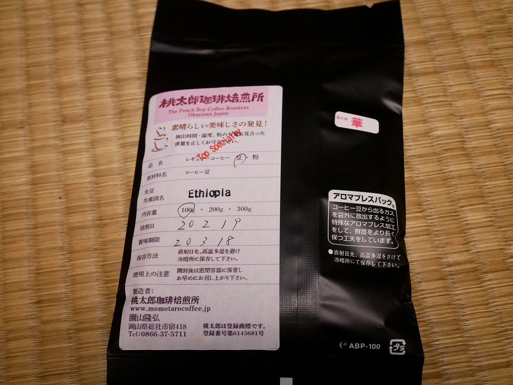 【購入した豆】<桃太郎・華(エチオピア イルガチェフェ ナチュラル)>