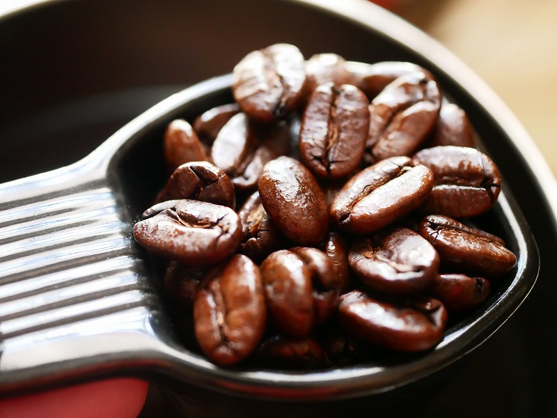 ・薄くオイルを纏った深煎り。ドライの状態で、マンデリンらしい香りの中に
