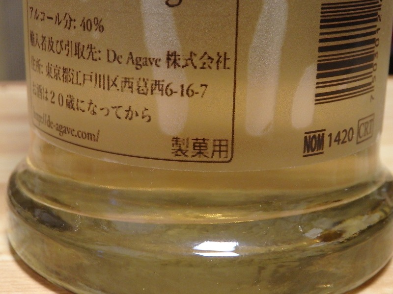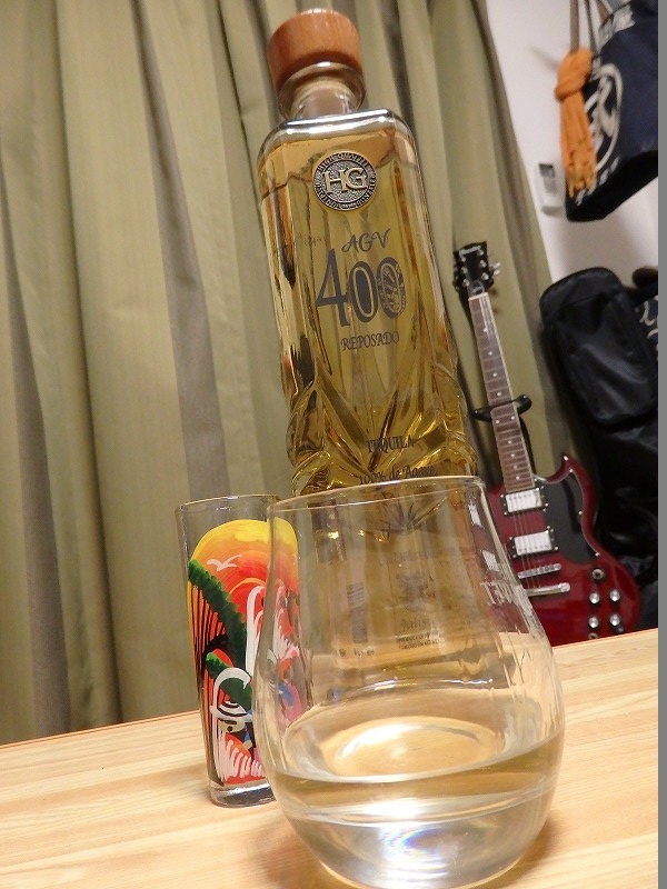 【AGV400 レポサド(グラスの中身は原液です)】出身・種別:メキシコ ロスアルトス地方 テパティトラン地区、テキーラ度数:40%購入価格:5,600円ほど