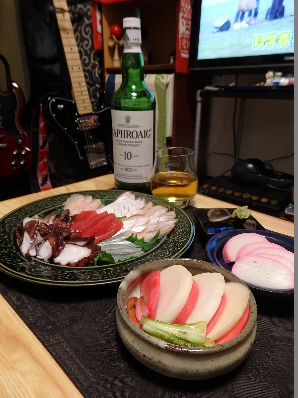因みにお供はお刺身、板わさ、じっくり漬け込んだ紅白かぶらの甘酢漬け!